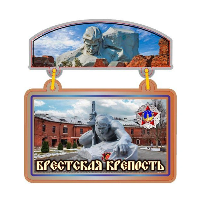 Тематический сувенирный магнит с подвижным элементом, выполненный в оригинальном формате «качели». Конструкция состоит из двух частей, соединенных гибкими креплениями, что создает эффект живого движения при использовании. На верхнем арочном сегменте размещено изображение главного монумента «Мужество» на фоне выразительных руин крепостных стен. Нижний, подвижный блок представляет собой полноцветную фотографию скульптурной композиции «Жажда» — одного из самых драматичных памятников мемориала, изображающего солдата, тянущегося с каской к воде. Композиция дополнена орденом Победы в верхнем углу и торжественной надписью «Брестская крепость» в нижней части. Благодаря сочетанию знаковых образов и динамической формы, этот магнит станет особенным памятным подарком.