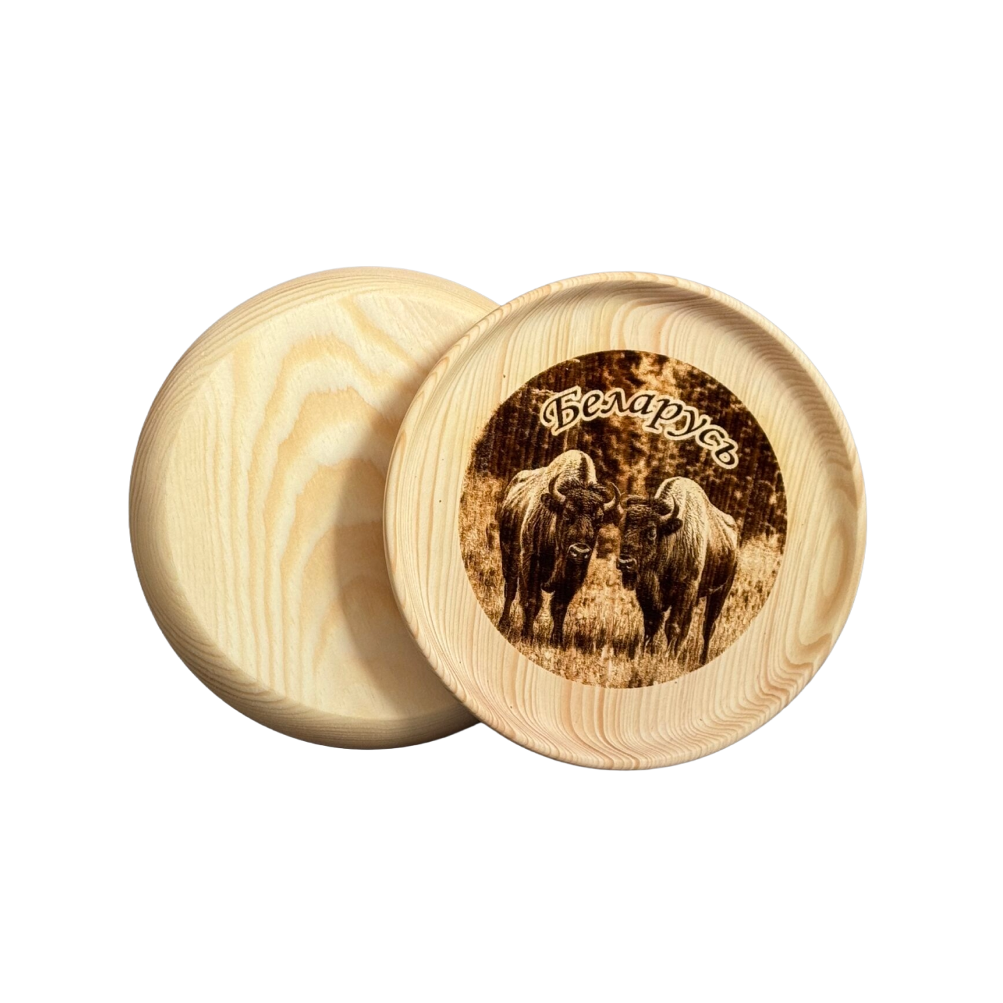 Тарелка сувенирная «Зубры пущи» из кедра с лазерной гравировкой 21 см